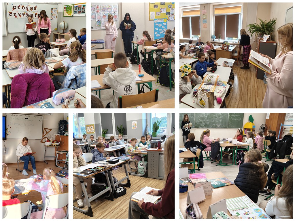 29 września nasza szkoła dołączyła do ogólnopolskiej akcji Dzień Głośnego Czytania. Tego dnia uczennice ze starszych klas czytały książki młodszym koleżankom i kolegom z klas I –III. Lekturą były pozycje: Waldemara Cichonia „Co słychać, Cukierku?” i Anny Włodarkiewicz „Chatka w sercu lasu”. To książki, które bawią i uczą, ale też wzruszają i skłaniają do refleksji. Czas spędzony na wspólnym czytaniu upłynął w miłej atmosferze.